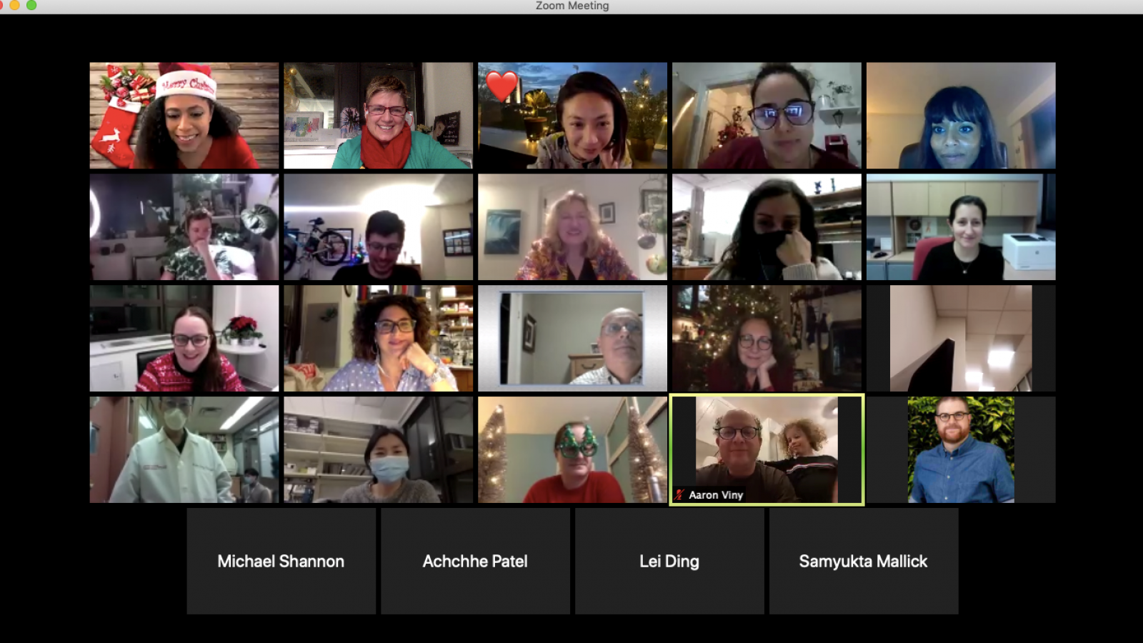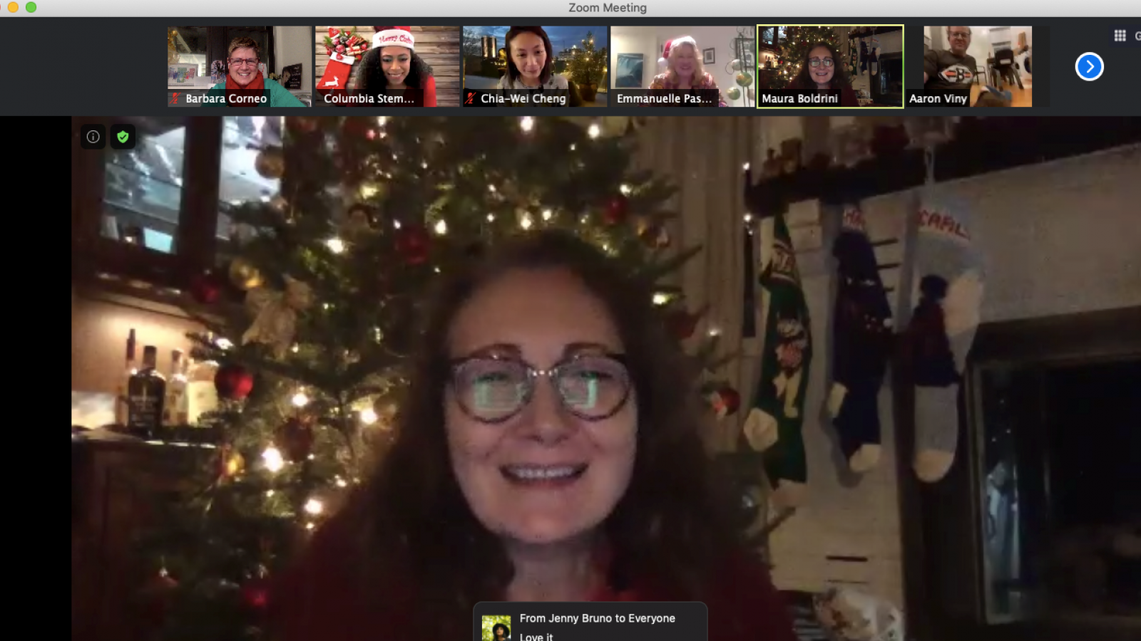 On December 14th the Columbia Stem Cell Initiative continued it's annual tradition and hosted our first (and hopefully last!) virtual holiday party. During the event Director Emmanuelle Passegué highlighted the year in review of accomplishments by CSCI full and affiliate members and our programmatic activities, photos of activity in the times of the COVID-19 pandemic were shared by member labs, attendees participated in some fun trivia questions in the categories of "STEMs, CSCIentists and Quaran-TV," we had some fun breakout chats, and even ended with an impromptu zoom holiday karaoke.